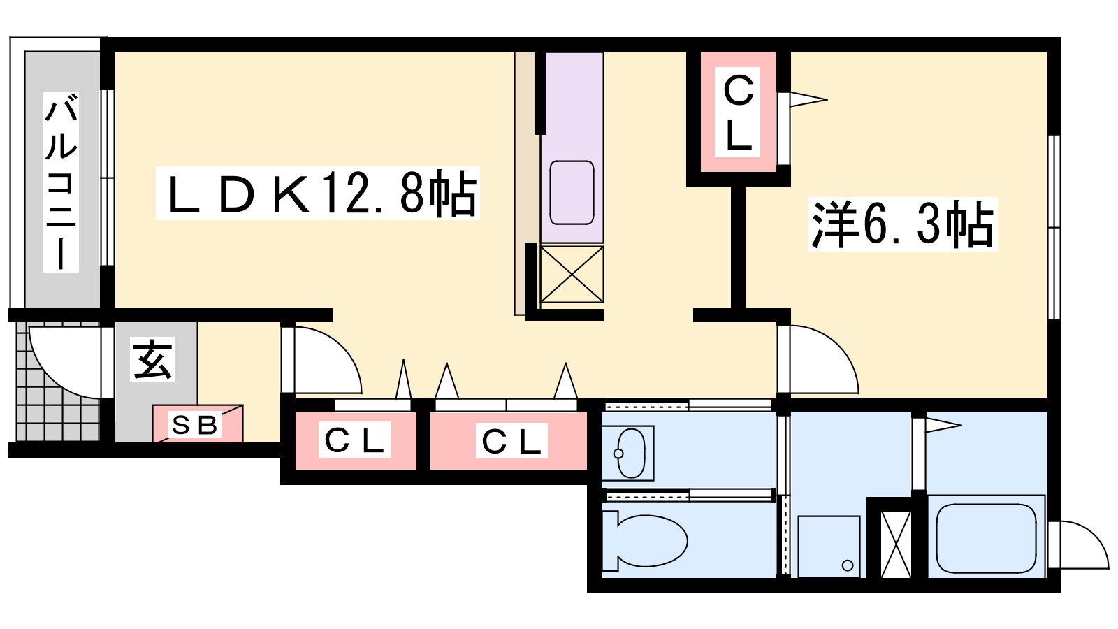 - DK12.8帖、洋室6.3帖