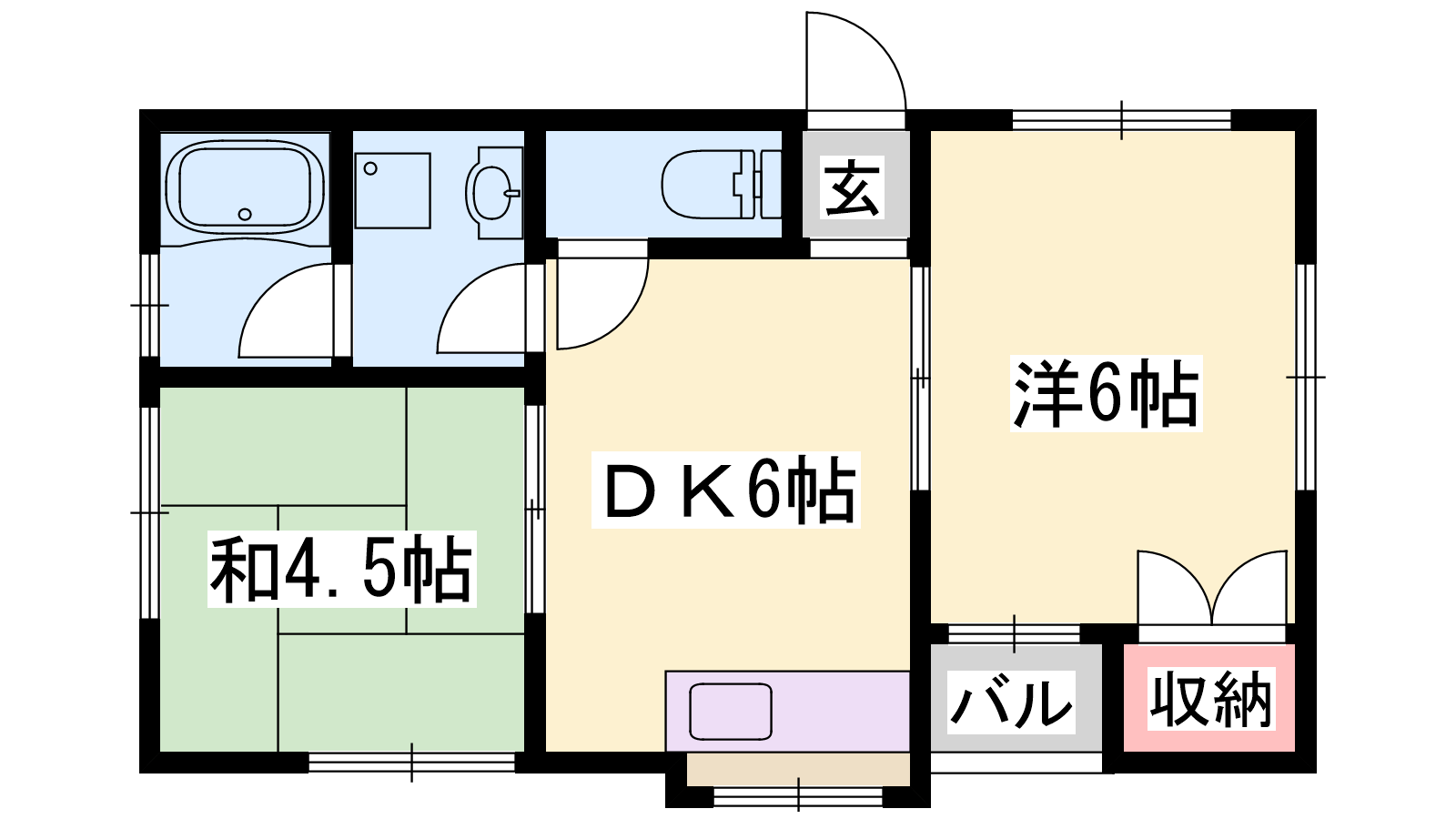 - DK6帖、洋室6帖、和室4.5帖