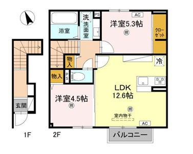 - LDK12.6帖、洋室5.3帖、洋室4.5帖