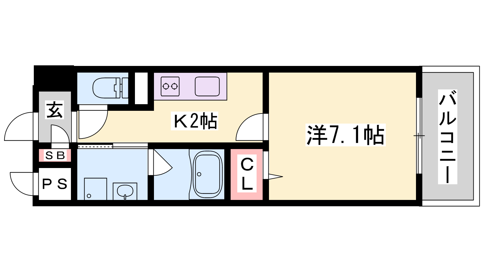 - K2帖、洋室7.1帖
