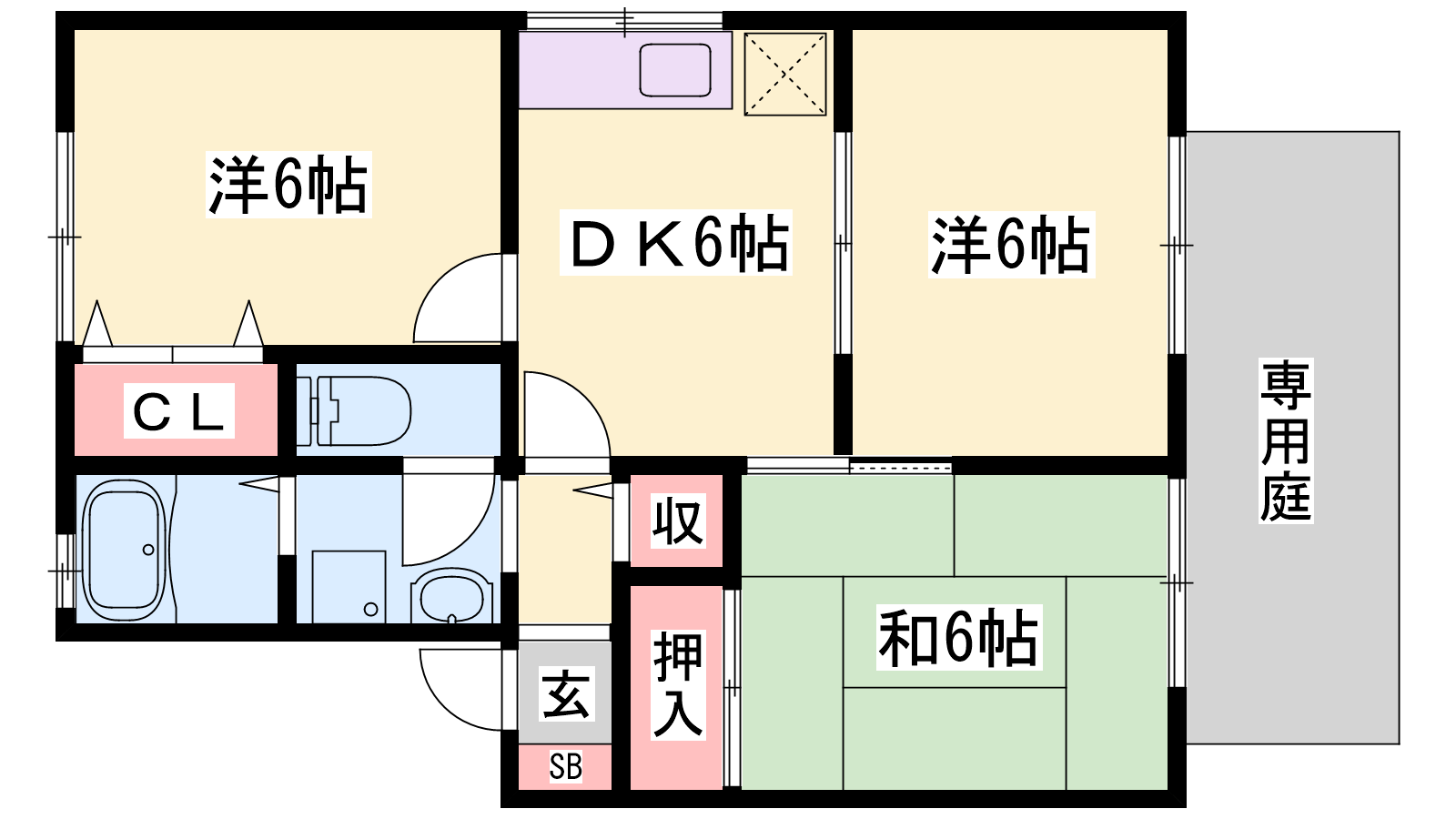 - DK6帖、洋室6帖、洋室6帖、和室6帖