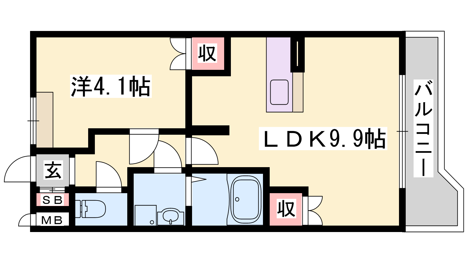 - LDK9.9帖、洋室4.1帖