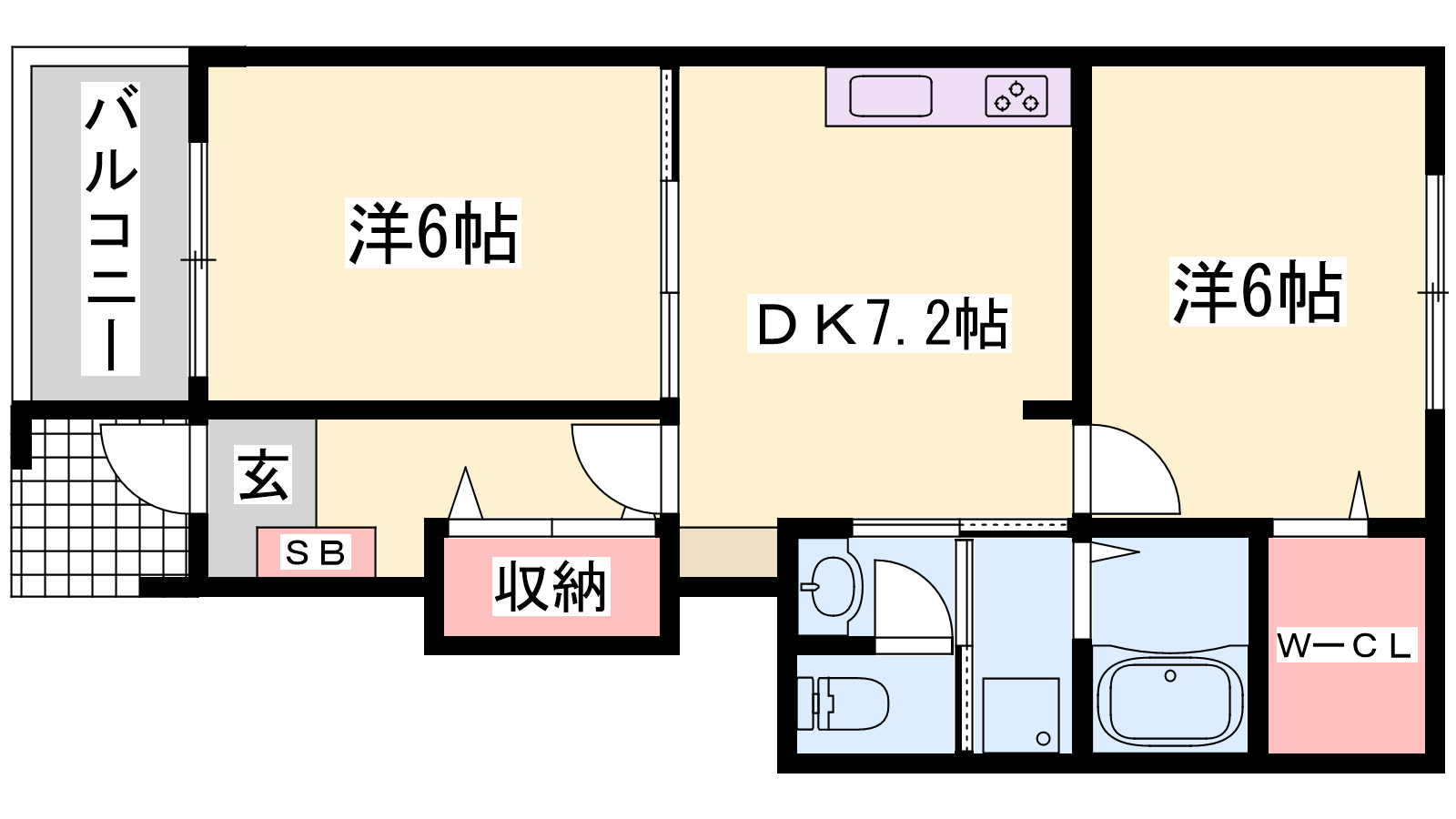 - DK7.2帖、洋室6帖、洋室6帖
