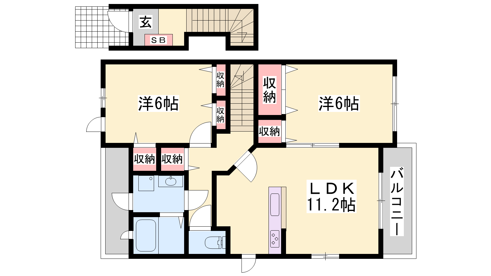 - LDK11.2帖、洋室6帖、洋室6帖