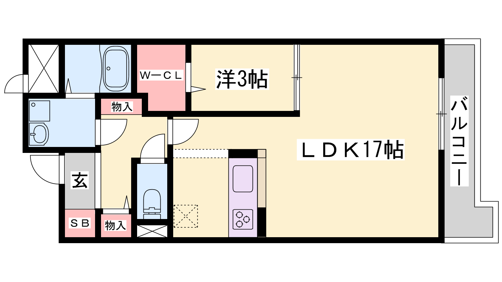 - LDK17帖、洋室3帖
