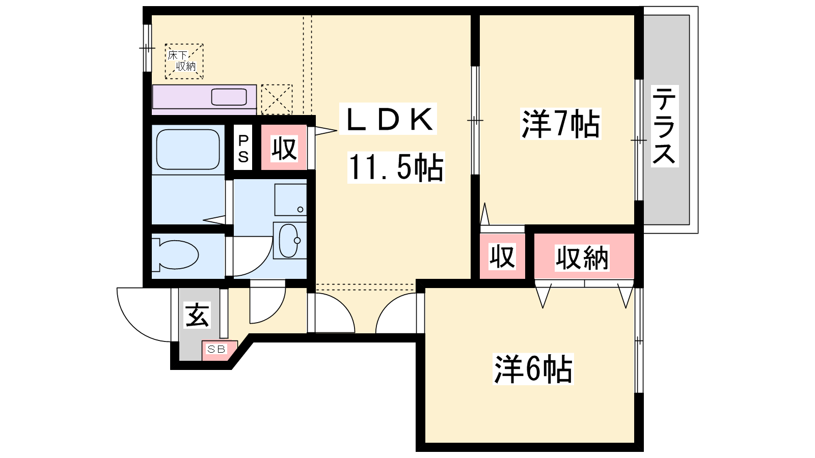 - LDK11.5帖、洋室6帖、洋室6帖