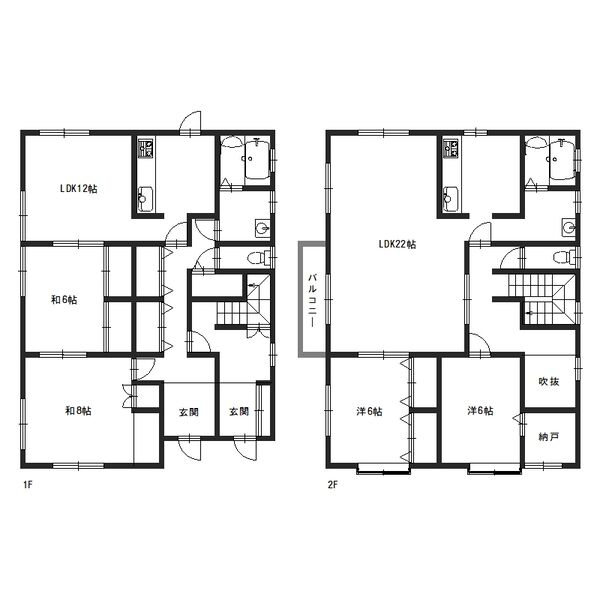 - LDK22帖、洋室6帖、洋室6帖、洋室12帖、和室6帖、和室6帖