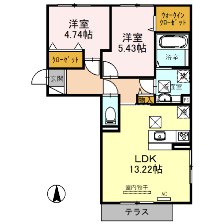 - LDK13.22帖、洋室5.43帖、洋室4.74帖