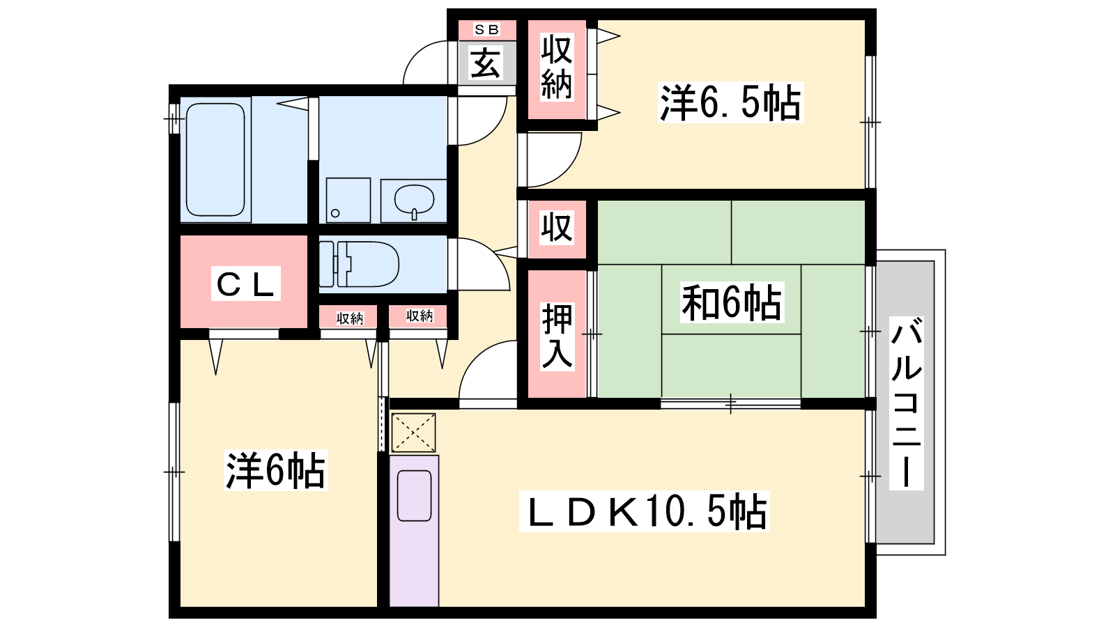 - LDK10.5帖、洋室6帖、洋室6.5帖、和室6帖