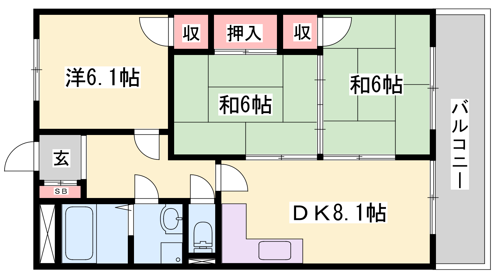 - DK8.1帖、洋室6.1帖、和室6帖、和室6帖
