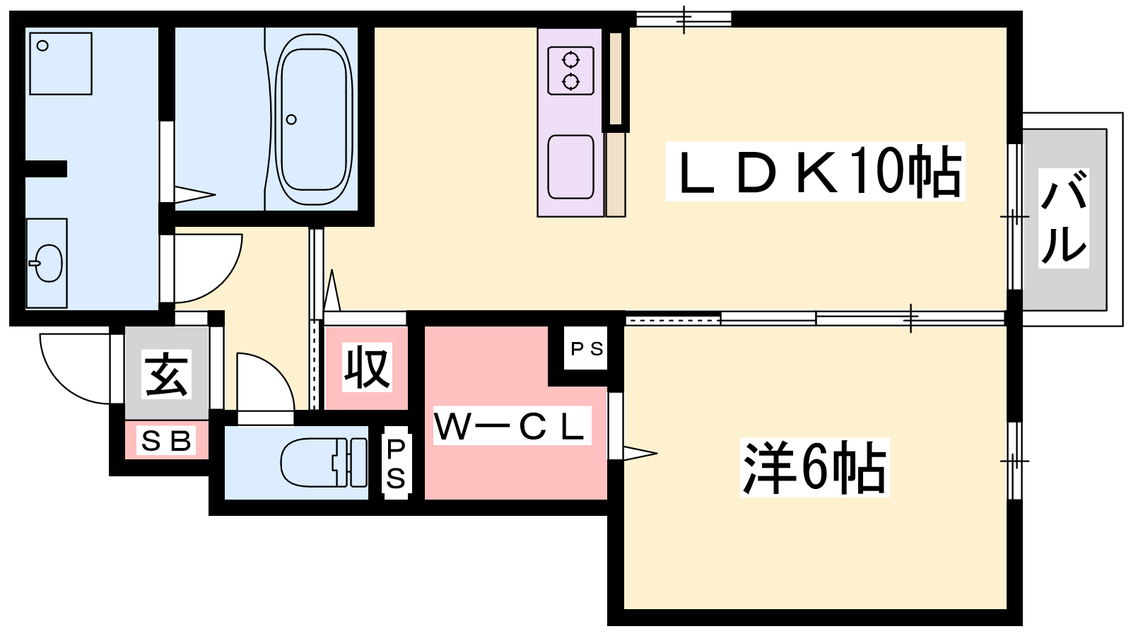 - LDK10帖、洋室6帖