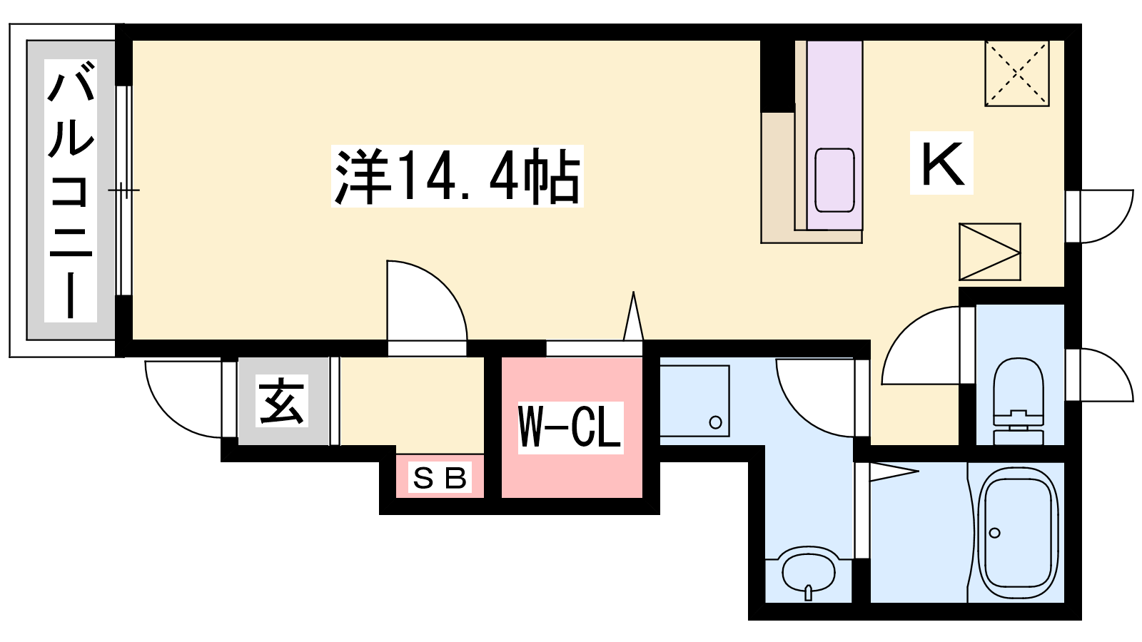 - K2帖、洋室14.4帖