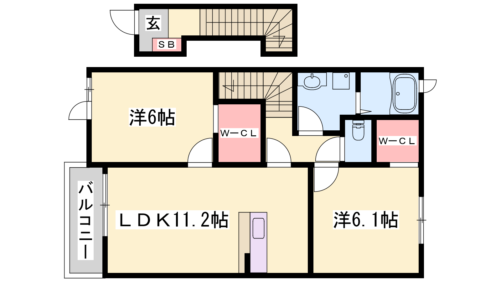 - LDK11.2帖、洋室6.1帖、洋室6帖