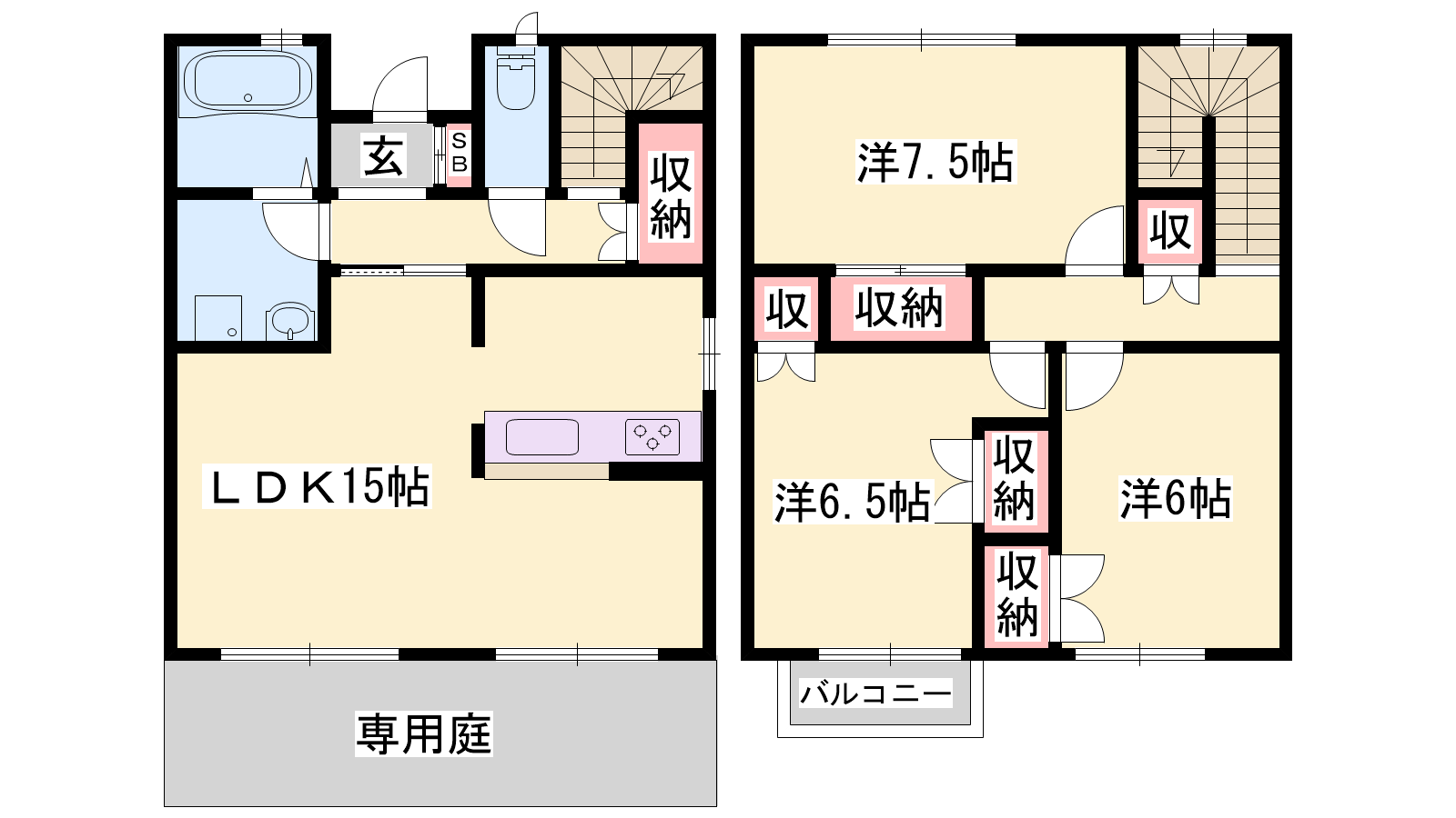 - LDK15帖、洋室7.5帖、洋室6.5帖、洋室6帖