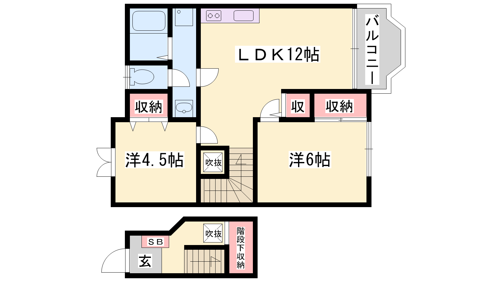 - LDK12帖、洋室6帖、洋室4.5帖