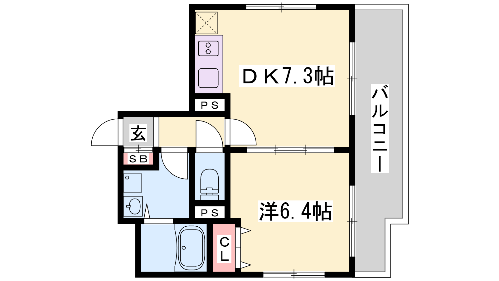 - DK7.3帖、洋室6.4帖