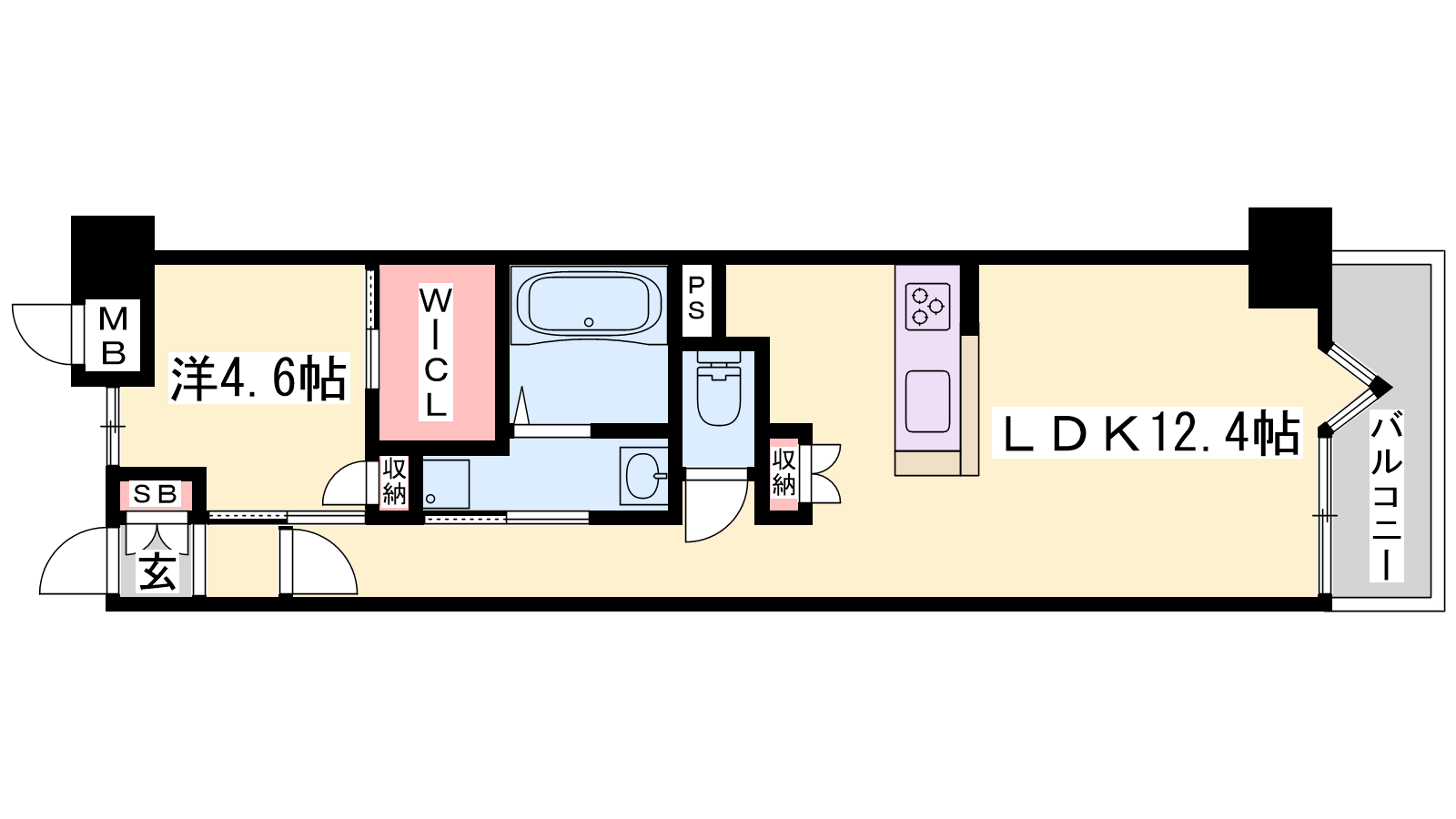 - LDK12.4帖、洋室4.6帖