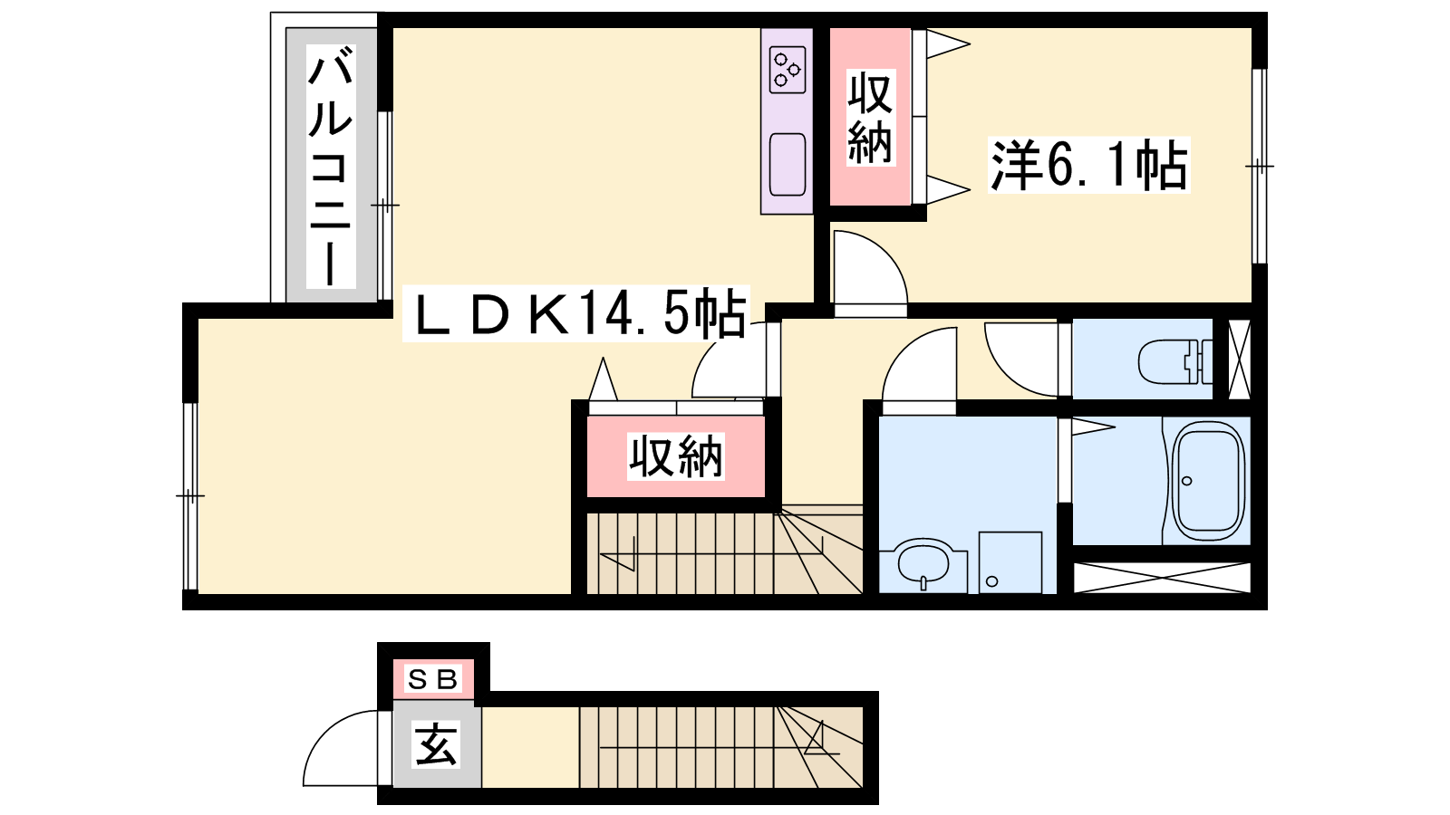 - LDK14.5帖、洋室6.1帖