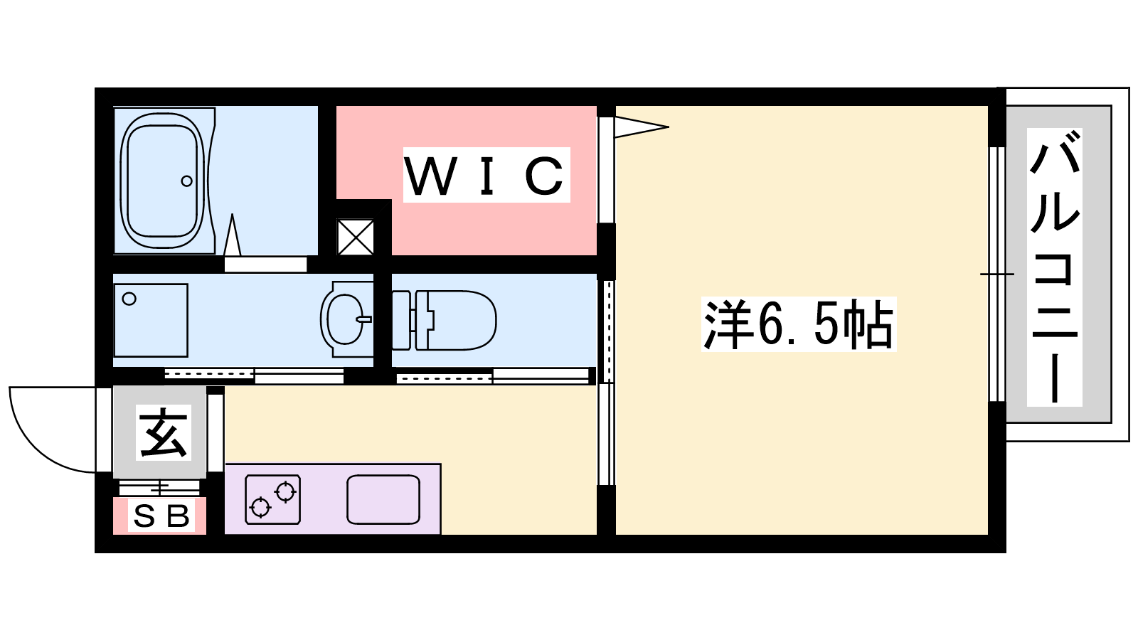 - K2帖、洋室6.5帖