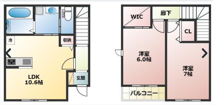 - LDK10.6帖、洋室7帖、洋室6帖
