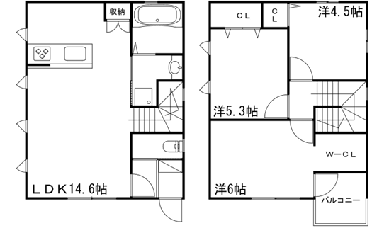 - LDK14.6帖、洋室6帖、洋室5.3帖、洋室4.5帖