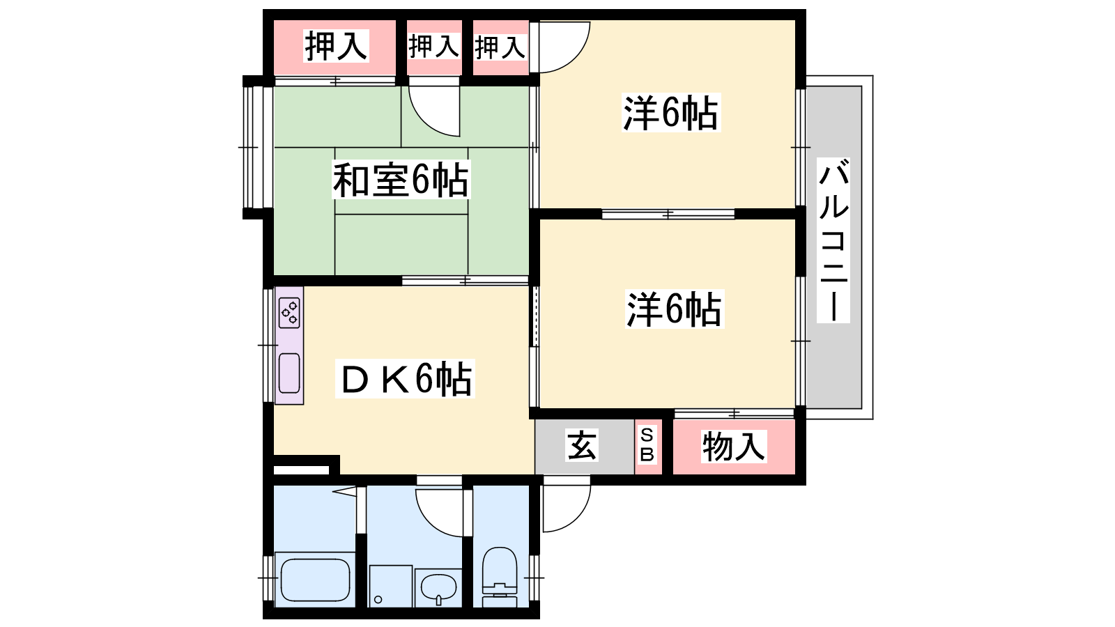 - DK6帖、洋室6帖、和室6帖、和室6帖