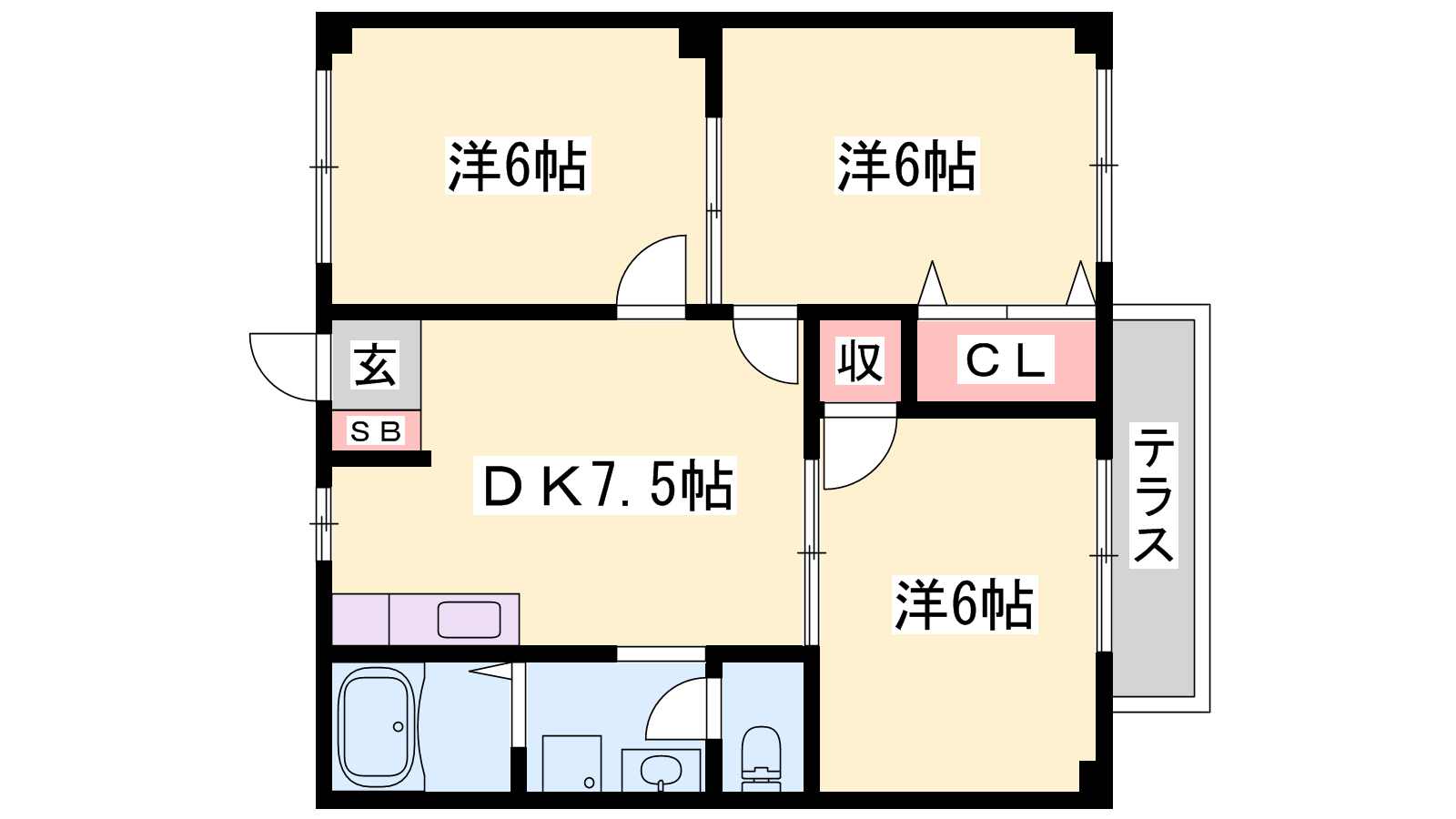 - DK7.5帖、洋室6帖、洋室6帖、洋室6帖