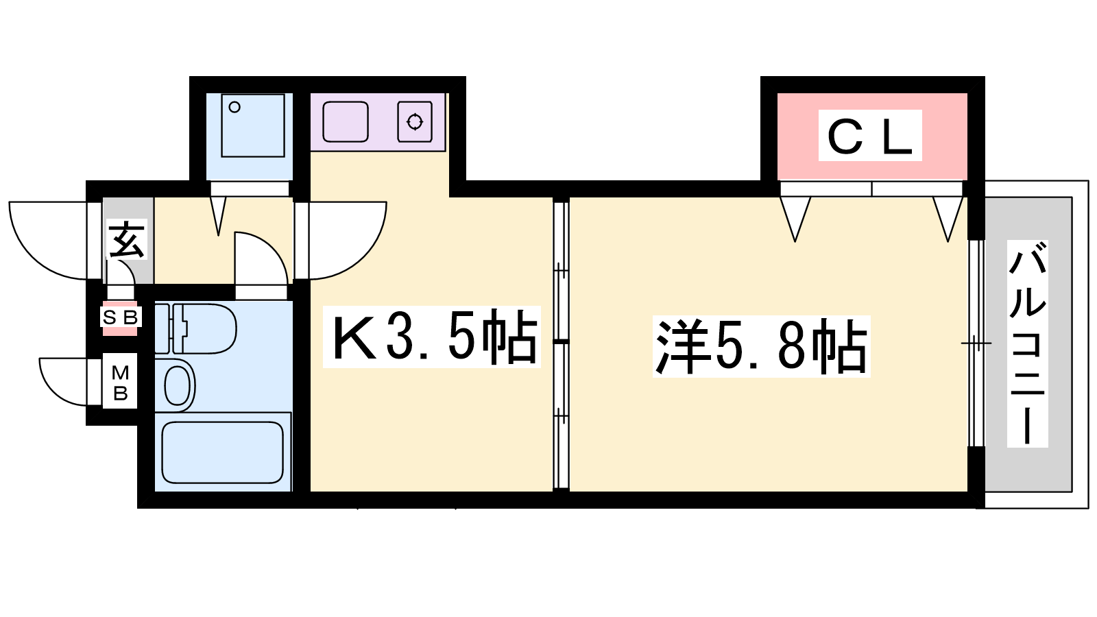 - K3.5帖、洋室5.8帖