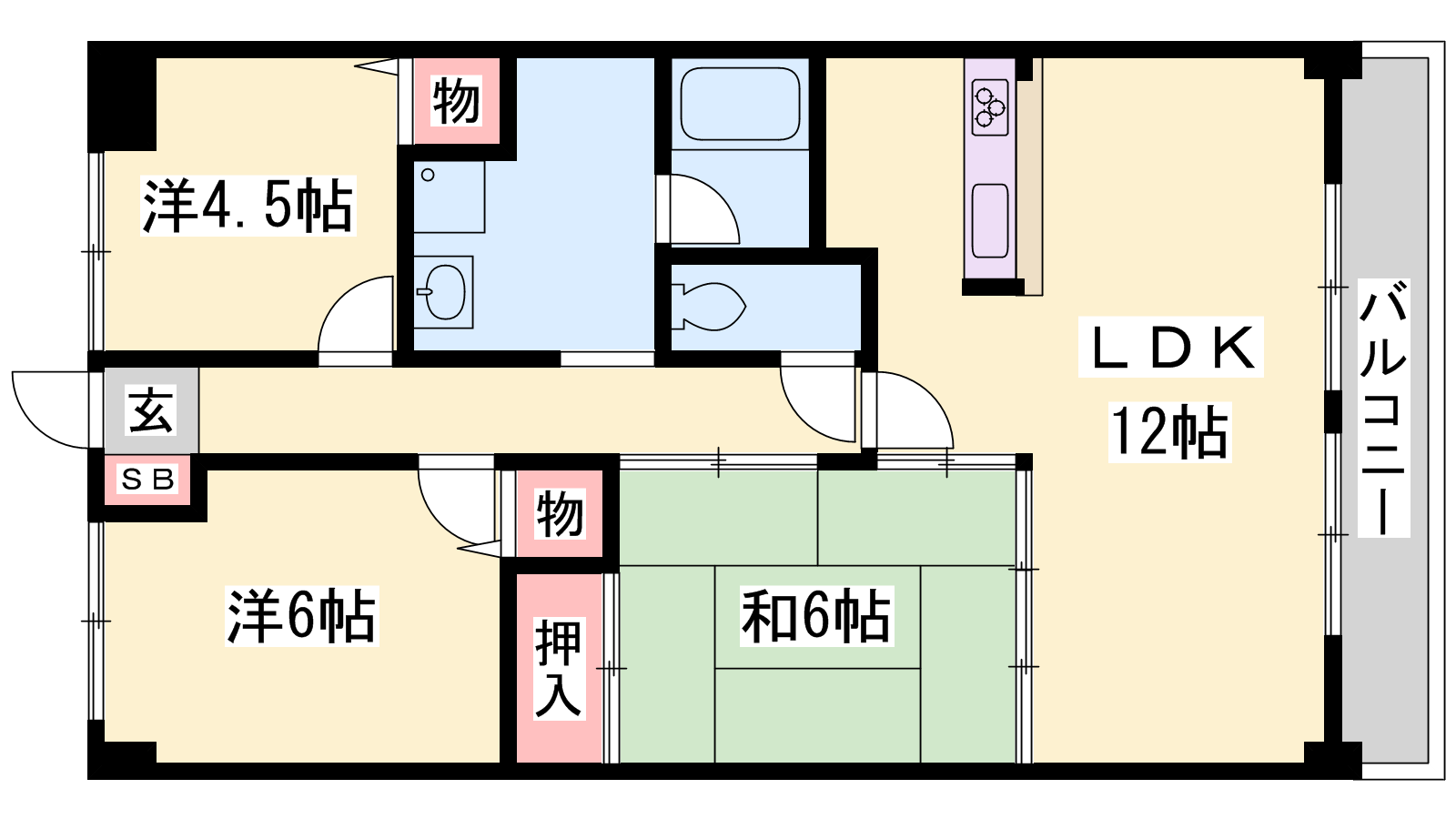 - LDK12帖、洋室6帖、洋室6帖、和室4.5帖