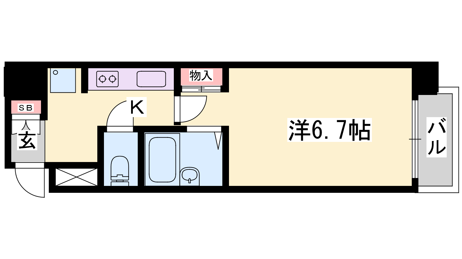 - K2帖、洋室6.7帖