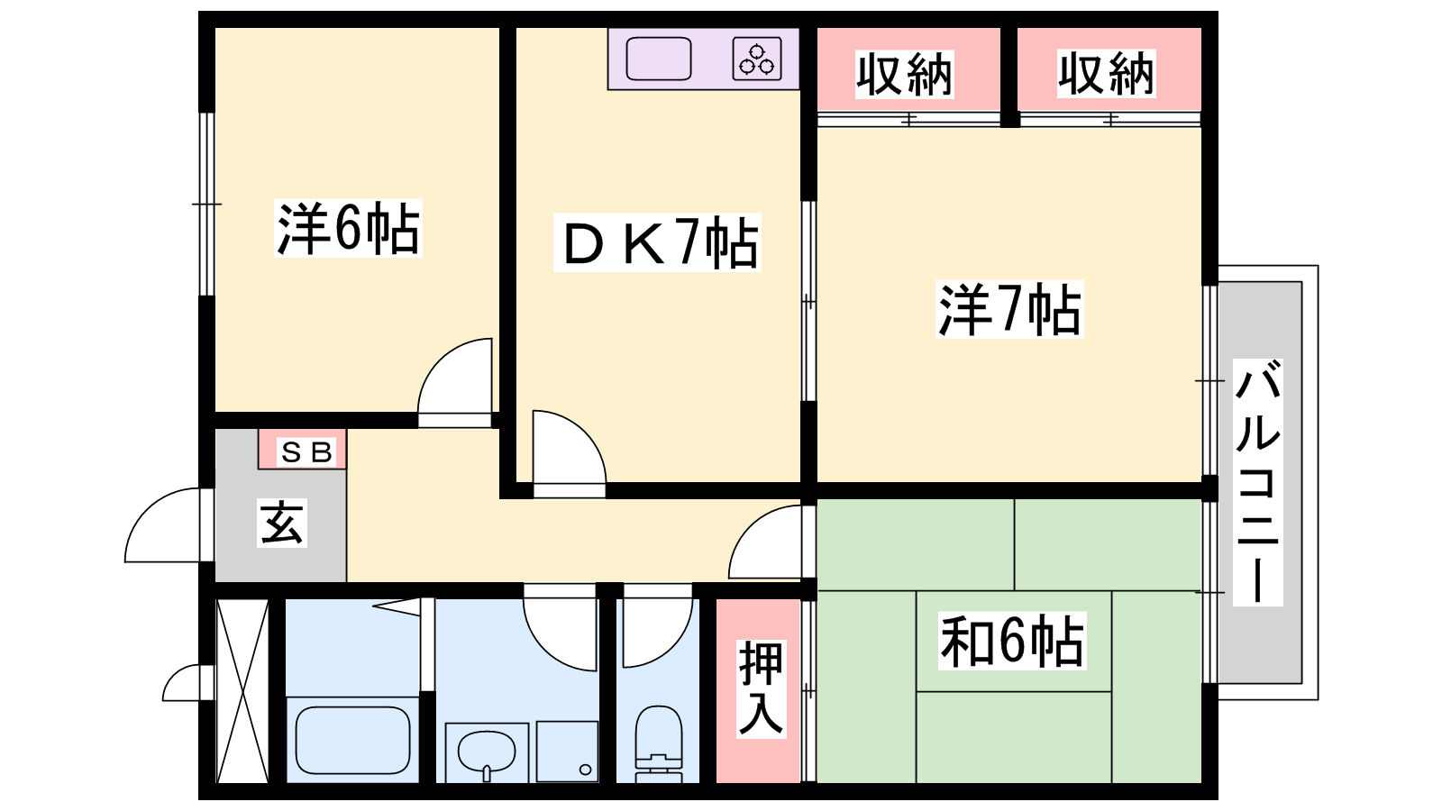 - DK7帖、洋室6帖、洋室7帖、和室6帖