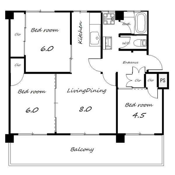 - LDK8帖、洋室6帖、洋室6帖、洋室4.5帖