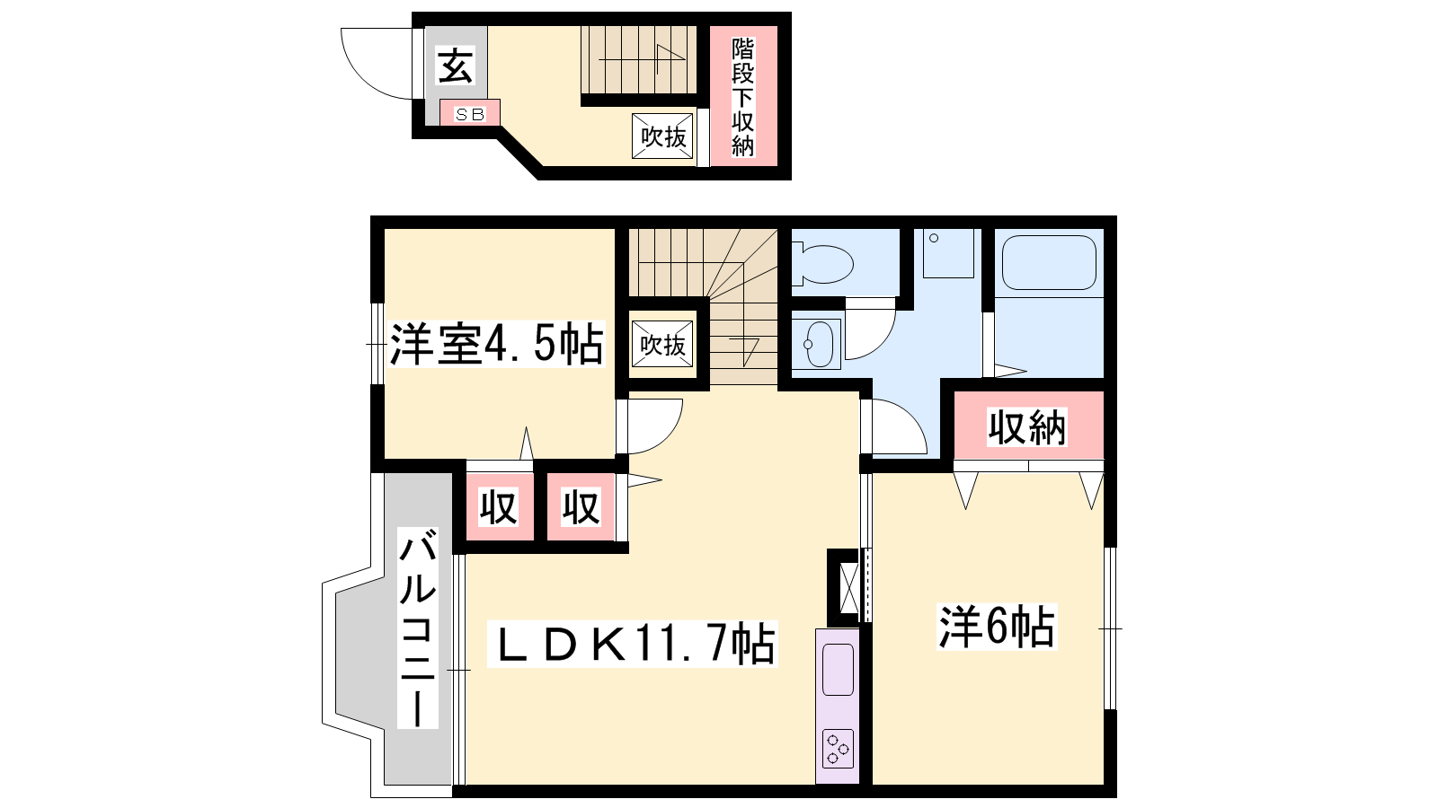 - LDK11.7帖、洋室4.5帖、洋室6帖