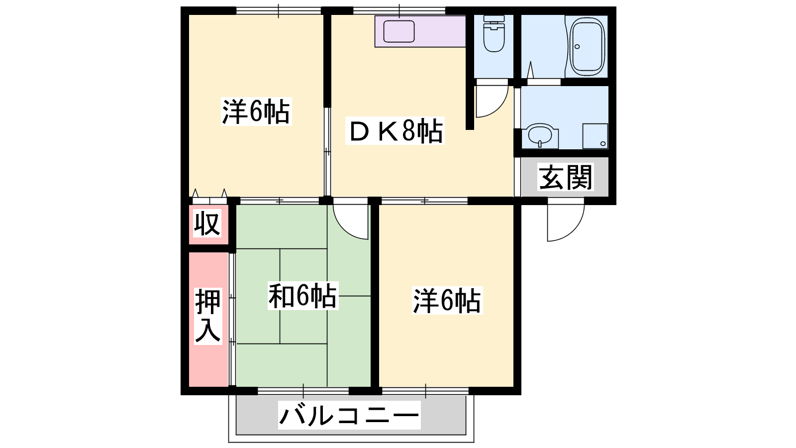 - DK8帖、洋室6帖、洋室6帖、和室6帖