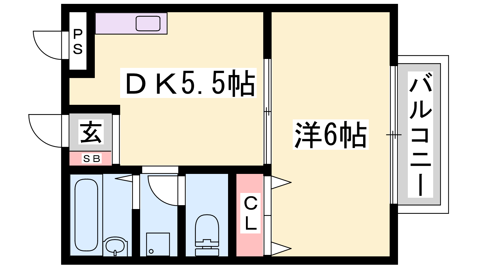 - DK5.5帖、洋室6帖