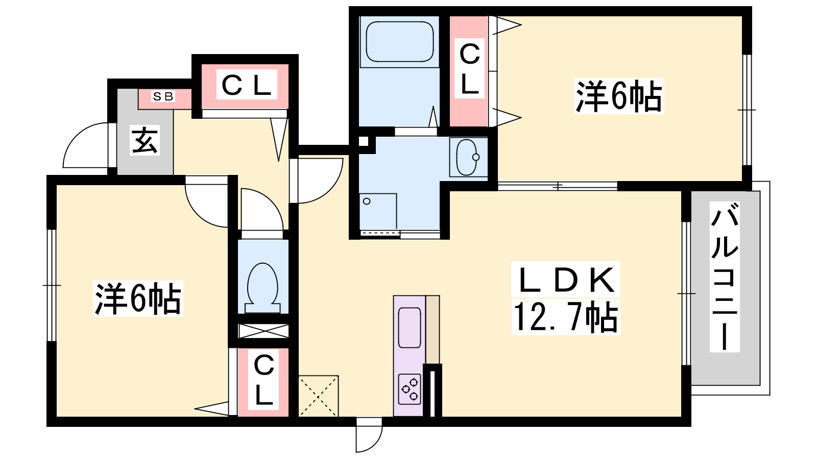 - LDK12.7帖、洋室6帖、洋室5.9帖