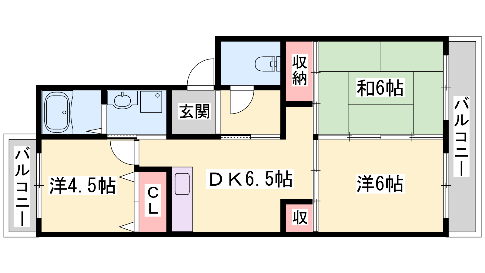 - DK6.5帖、洋室6帖、洋室4.5帖、洋室6帖