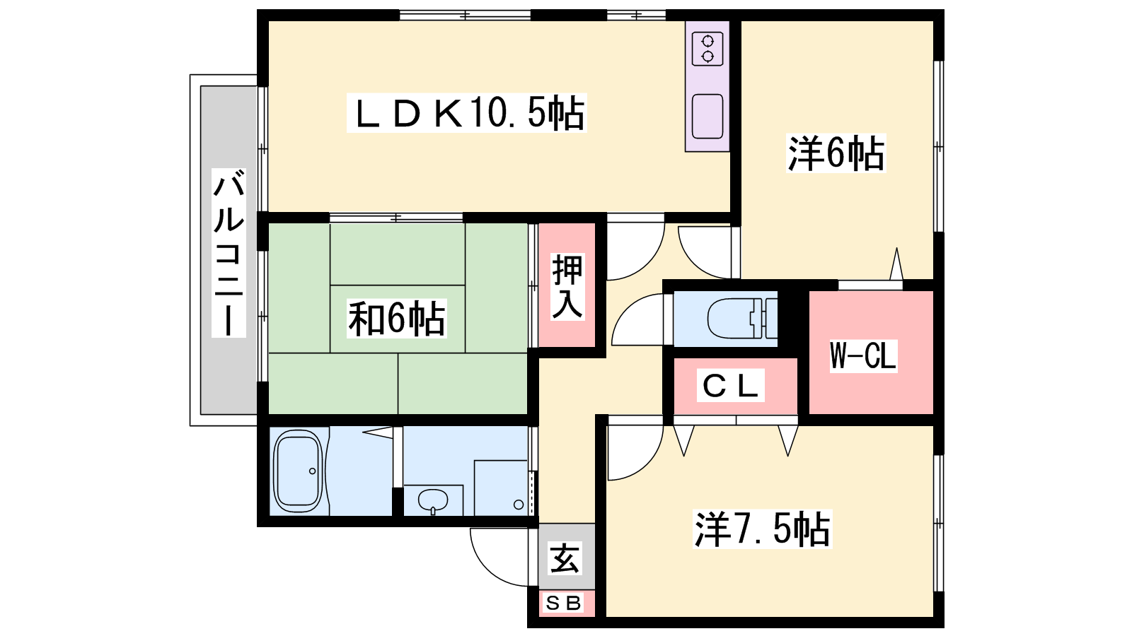 - LDK10.5帖、洋室7.5帖、洋室6帖、和室6帖