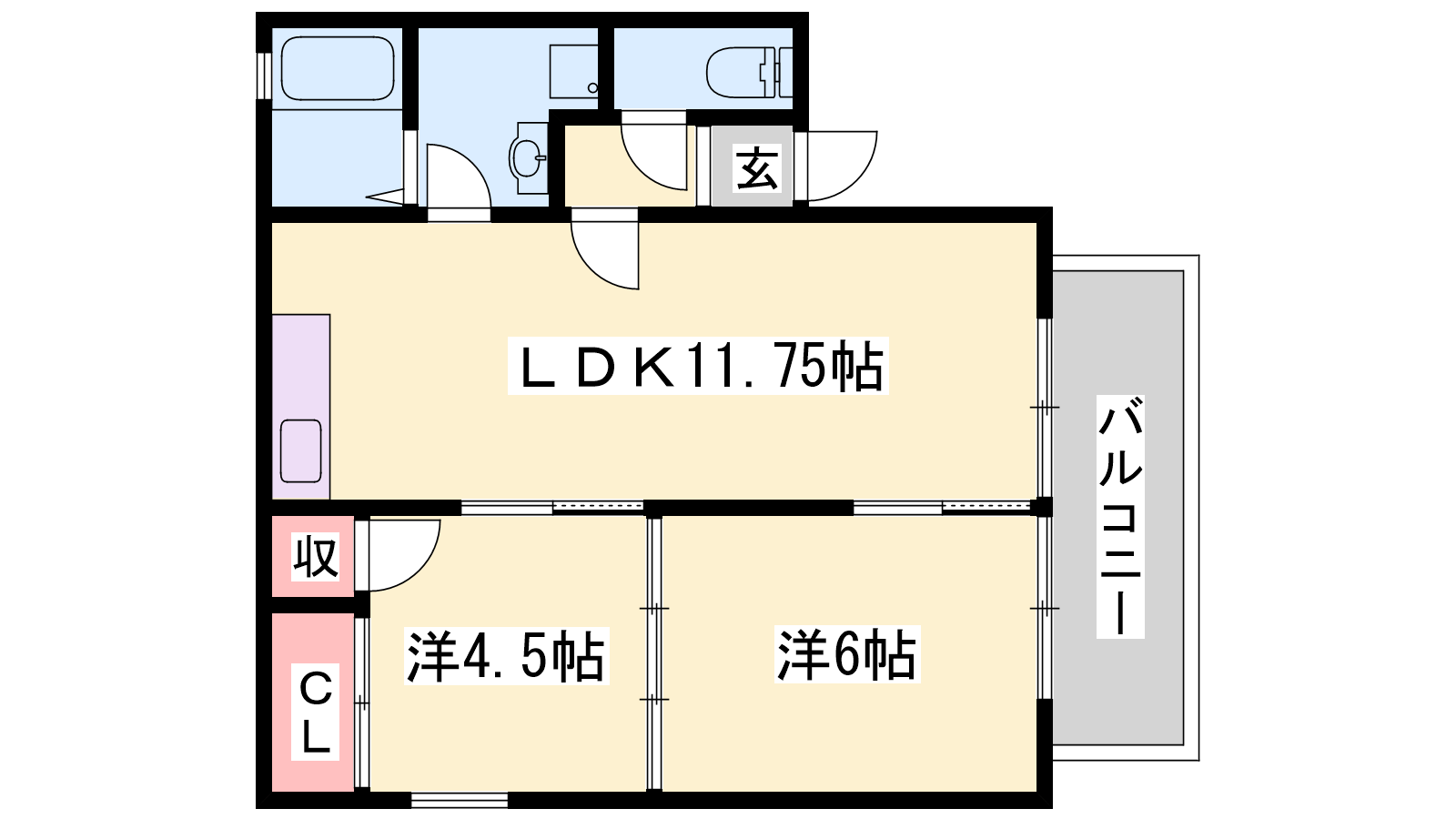 - LDK11.75帖、洋室6帖、洋室4.5帖