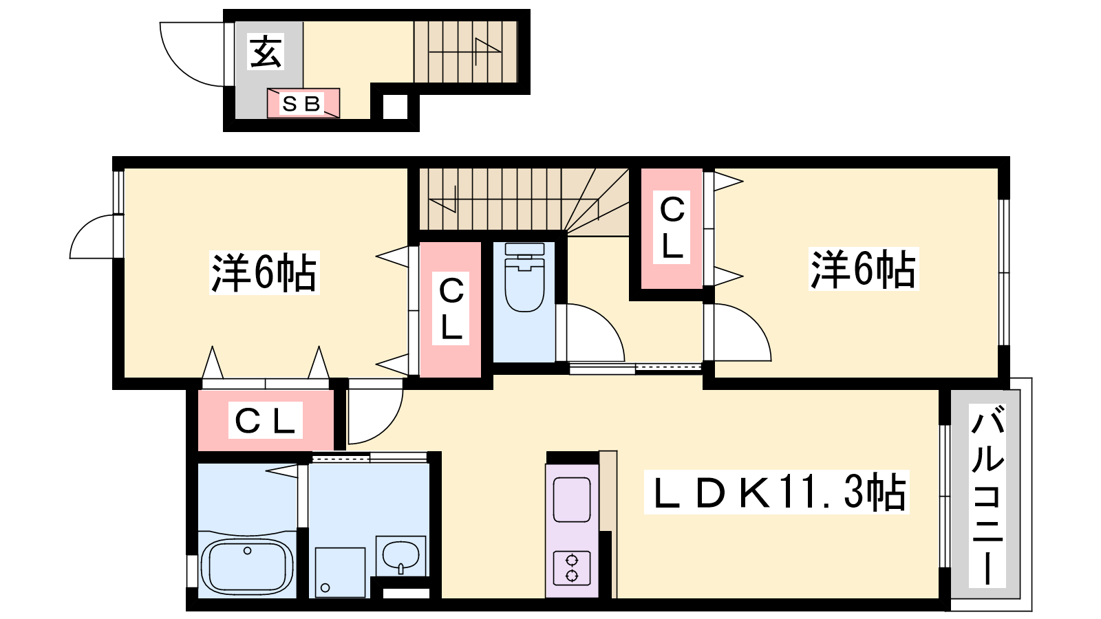 - LDK11.3帖、洋室6帖、洋室6帖