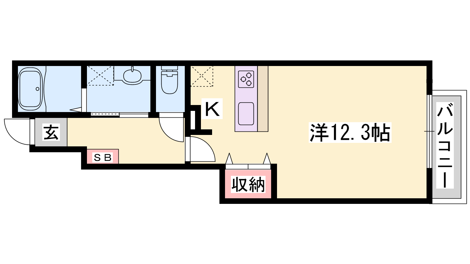 - K2帖、洋室12.3帖