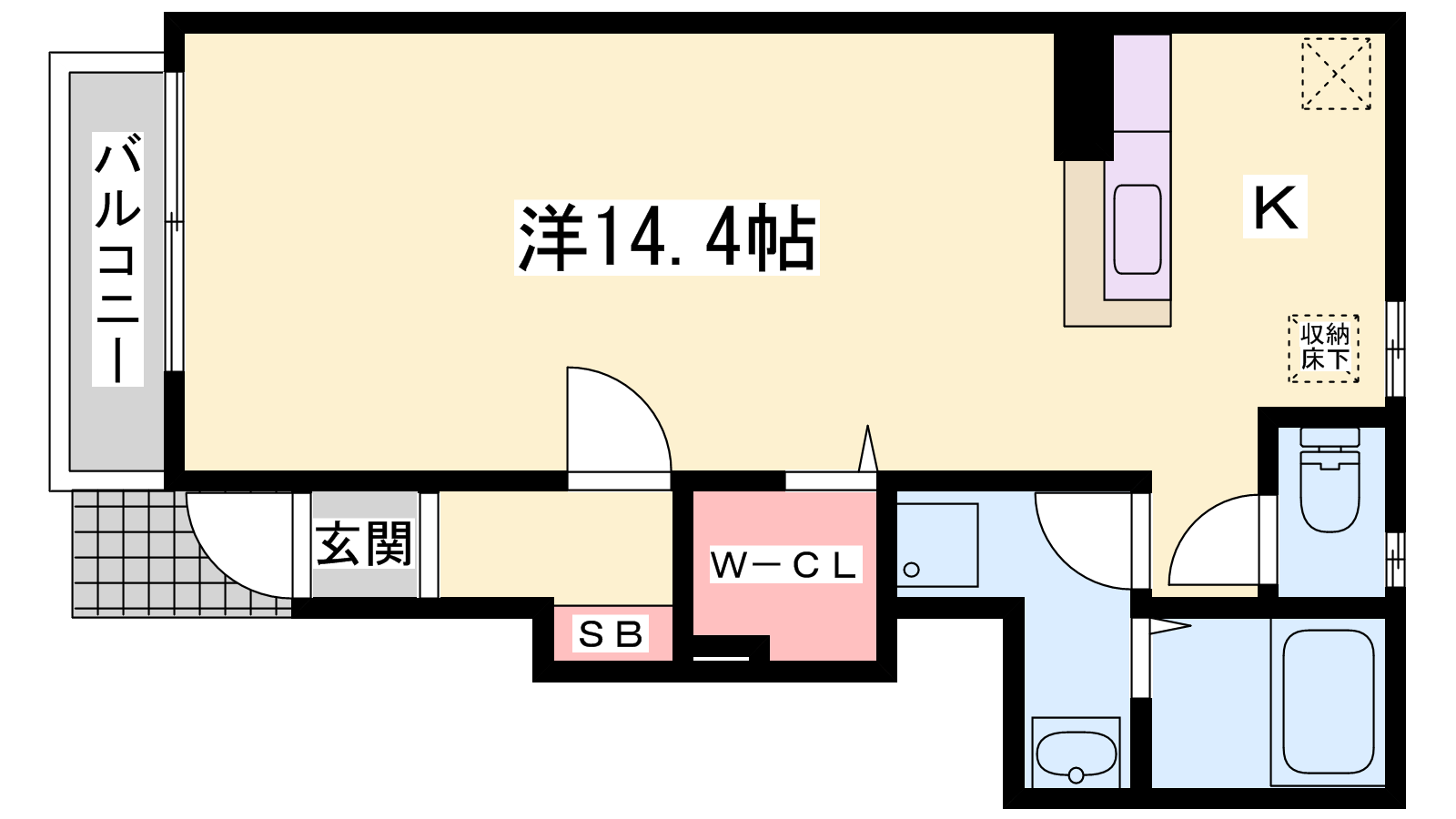 - K3帖、洋室14.4帖