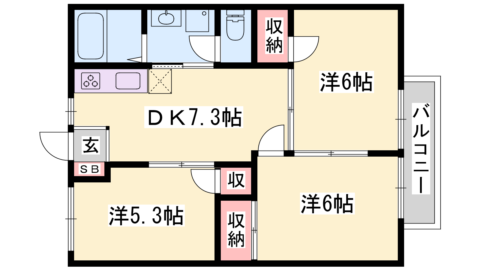 - DK6.9帖、洋室6帖、洋室6帖、洋室5.3帖