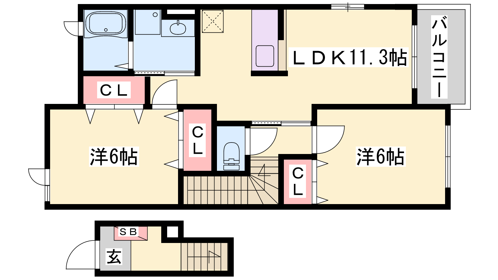 - LDK11.3帖、洋室6帖、洋室6帖