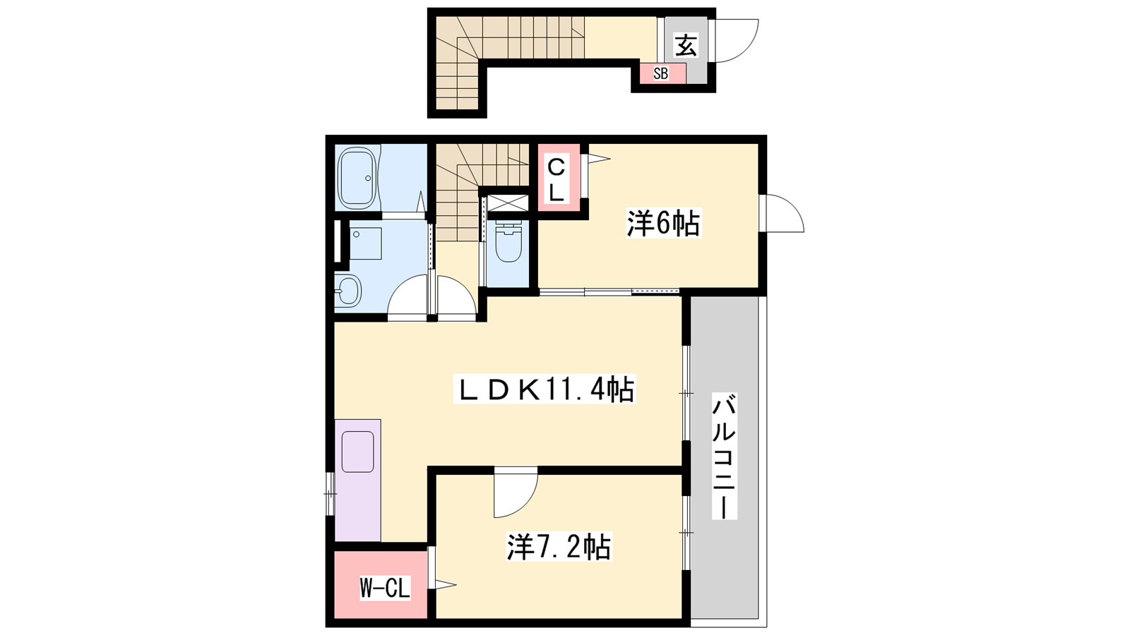 - LDK11.4帖、洋室7.2帖、洋室6帖