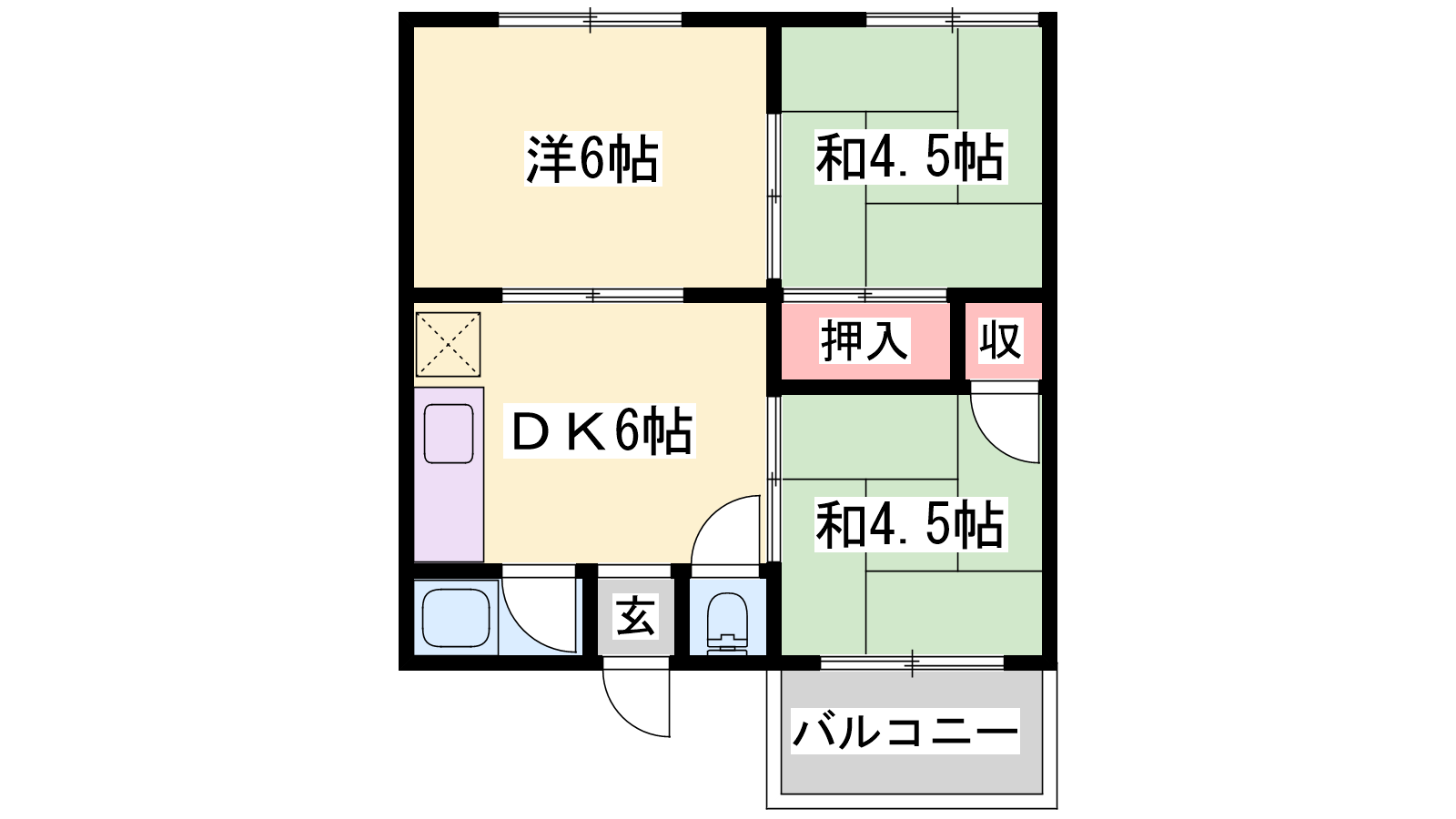 - DK6帖、洋室6帖、和室4.5帖、和室4.5帖