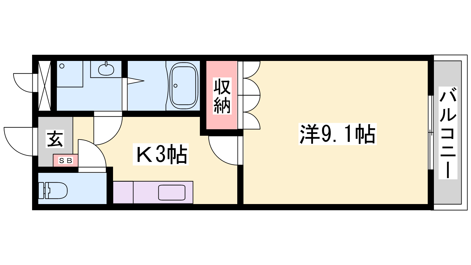 - K3帖、洋室9.1帖