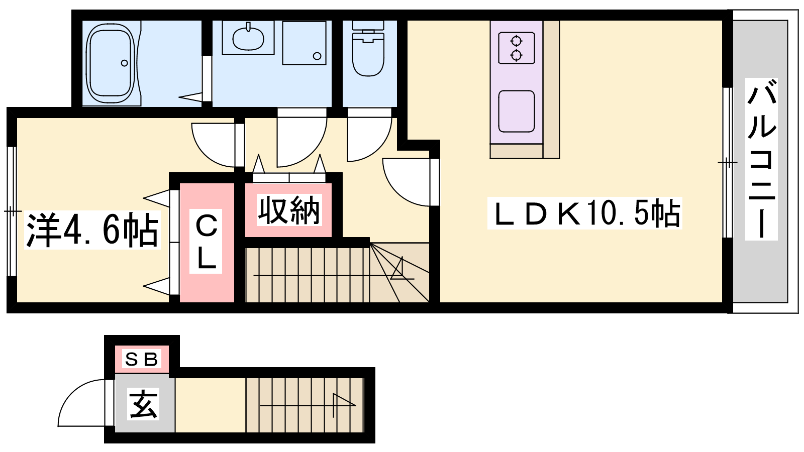 - LDK10.5帖、洋室4.6帖
