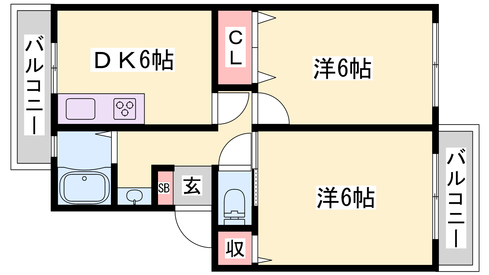 - DK6帖、洋室6帖、洋室6帖