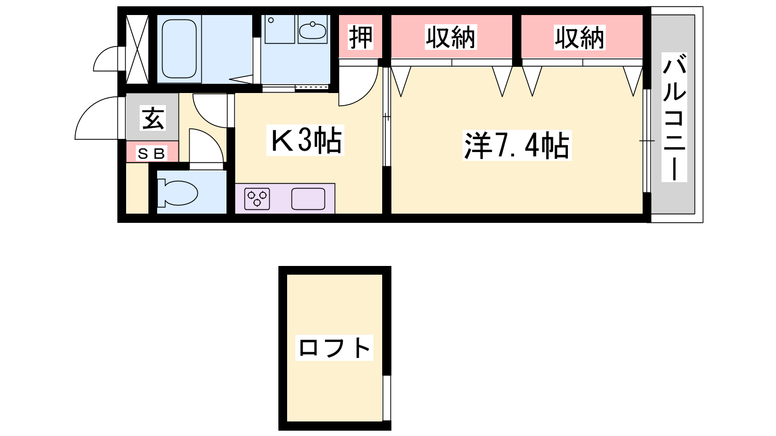 - K3帖、洋室7.4帖